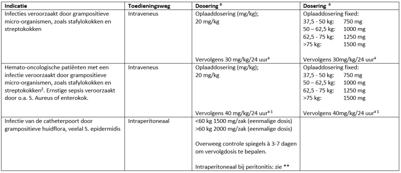 Afhankelijk van leeftijd en gewicht: https://kinderformularium.nl/geneesmiddel/337/vancomycine